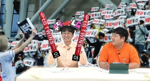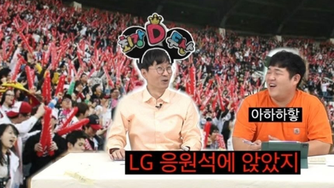 이제 장항준 감독이 LG 응원석에 앉아서