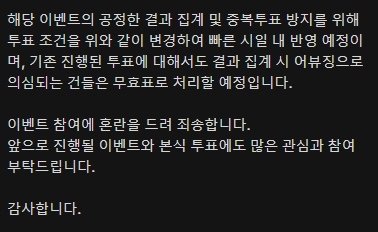 여러아이디로 투표수 올린거 무효처리된대