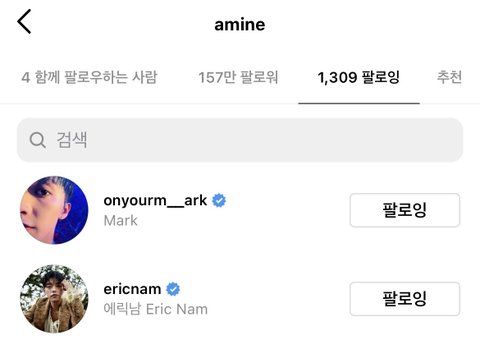 마크 아미네랑 맞팔했댕