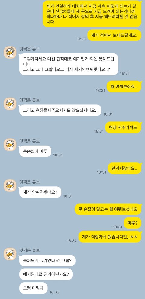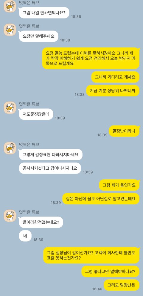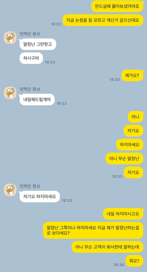 -업주로써 클라이언트의 말을 기분 나빠하고 요청 드린거에 있어서 요점을 잡지 못할뿐더러 말 꼬리 잡기 급급해요 그래놓고 오히려 저보고 말장난 하지말라고 말씀하시는 인성 진짜 할말이 없네요..