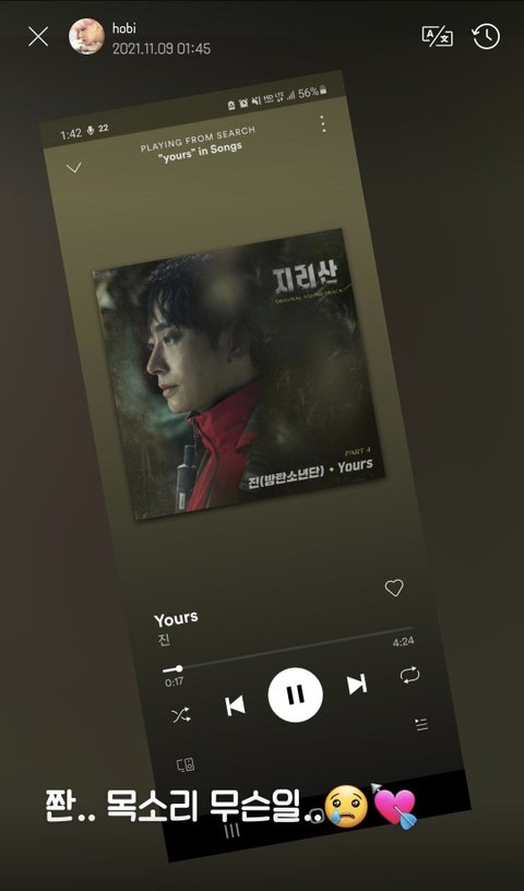 그리고 지리산 OST 중독 증세 보이는 제이홉