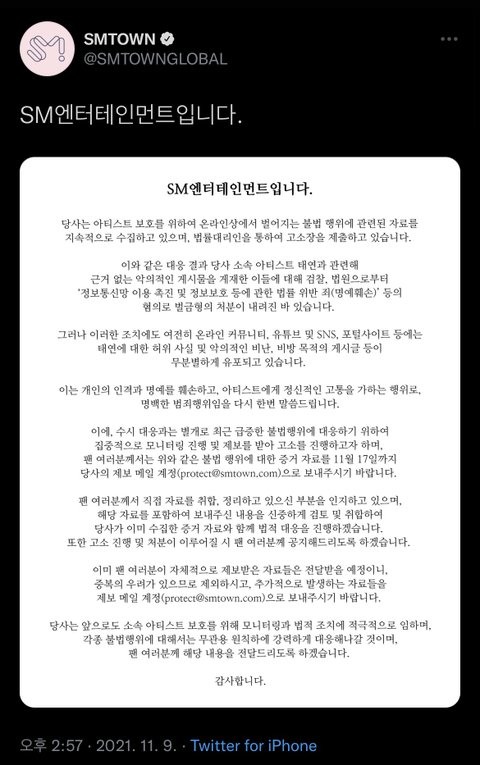 태연 개인 고소공지인듯.. 태연은 고소할줄 알았음 맨날 고소하잖아