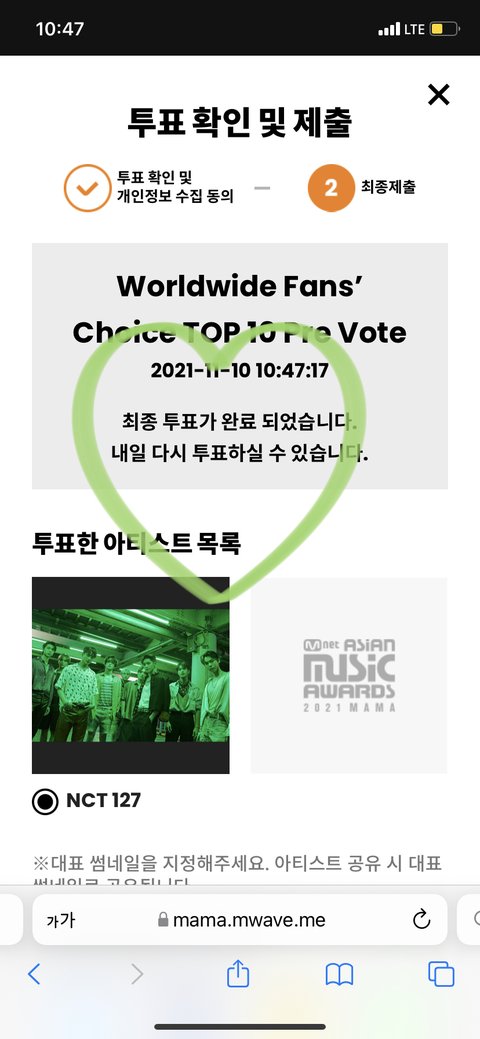 MAMA 투표하고 왔다 다들 오늘꺼 하자