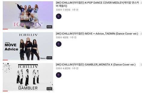그래도 최근엔 남돌 댄스 커버 좀 올려주더라.( 백현, 방탄, 스키즈, 세븐틴, 몬엑, 태민, 엔시티 등등 )