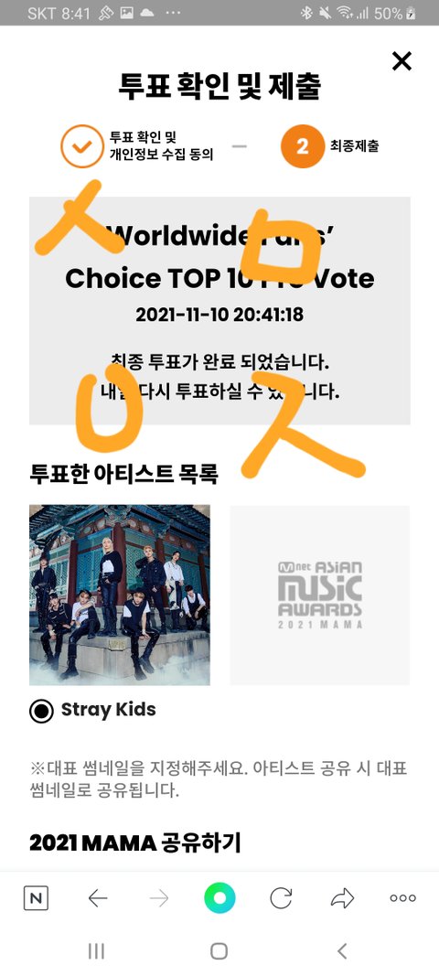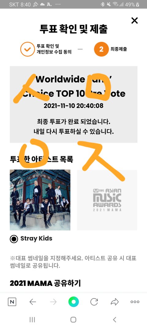 늦은 7번째 mama 투표인증