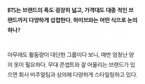 BTS는 브랜드의 폭도 굉장히 넓고, 가격대도 대중 적인 브랜드까지 다양하게 섭렵한다. 하이브와는 어떤 식으로 논의하나?