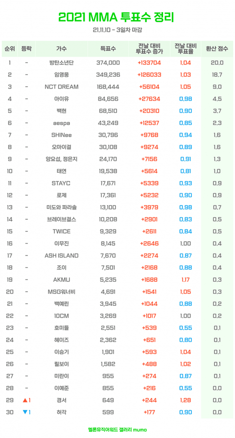 첫날 투표 100으로 잡았을 때 추이 : 100 > 90 > 94.5