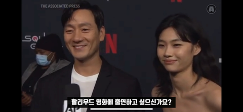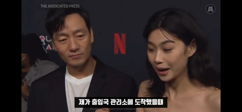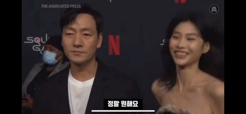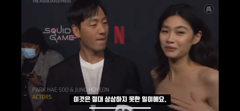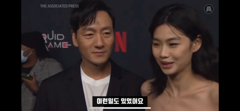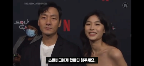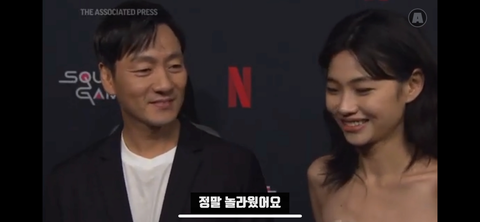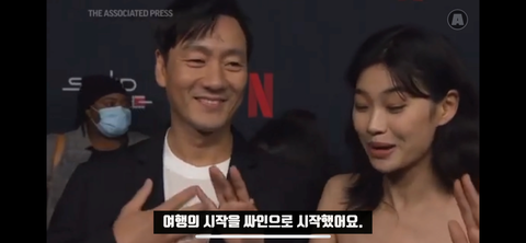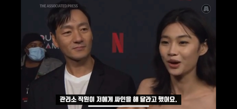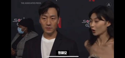 최근 오징어게임 출연 배우들이 미국에서 기자회견을 가짐