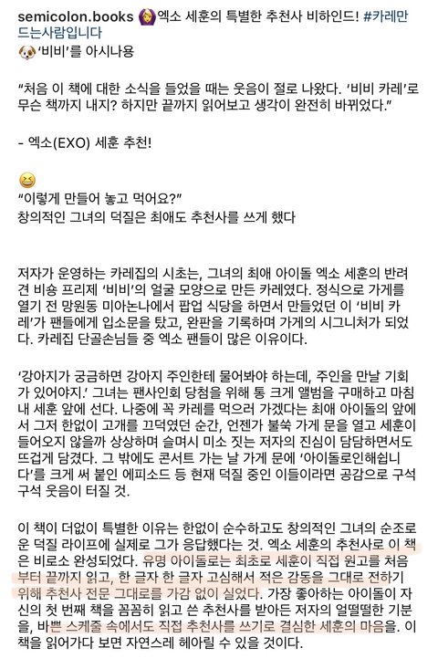 세훈이 팬이 만든 책 추천사 써줬대ㅠㅠ