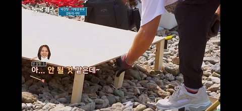 열시밓 만들고 있는에 아내분이 나무판떼기 하나로는 다리 지탱 안될거 같다고 하지만 말을 안들음