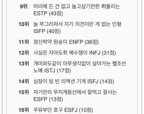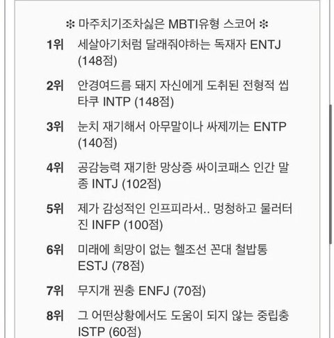 마주치기 싫은 mbti 순위
