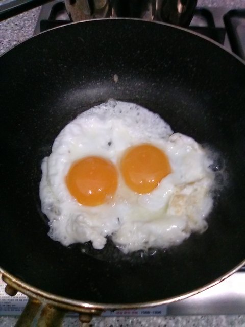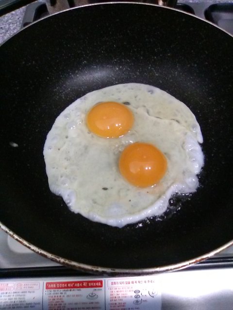 이제 계란을 넣어주면 되는데 기름이 후라이팬 위로 물결모양을 띄우면서 퍼지면 계란을 구울 완벽한 온도라고 개인적으로 생각합니당 (또 제 개인적인 의견이지만 볶음라면이든 국물라면이든 그 맛은 계란 딱 두 개를 넣었을 때 라면을 다 먹을 때까지 훌륭한 식사를 할 수 있다고 생각해요..^_^bb 딱 두 개,,)