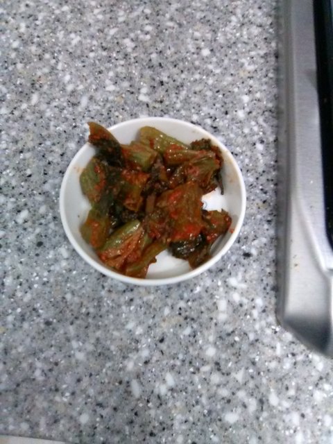 면이 끓는동안 갓김치를 준비해줄게요(요즘 모두가 짜파게티에 파김치라고 외치고 있지만 저는 짜파게티에는 무조건 갓김치라고 생각해요.. 진짜 그 둘의 시너지는 말로 형용할 수가 없어요,,^_^bbbbbbbbbbbbbbbb 아 그렇다고 해서 짜파게티에 파김치의 조합을 찬양하는 사람들의 취향을 무시하는 건 아니고..^3^,,)