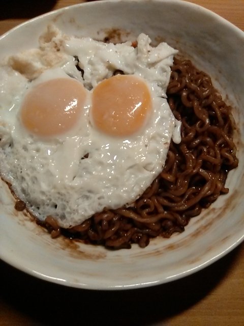 그리고 마지막으로 계란후라이를 올린 대망의 짜파게티~