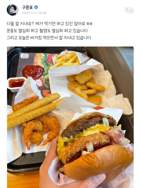 “다들 미안!” 에 이어서 이젠 “다들 잘지내시죠? 전 ~먹으면서 잘 지내고있어요” 를 밀고 나가는 겸디.. 위버스가 식단표가 될 줄이야.. ㅋㅋㅋㅋㅋ