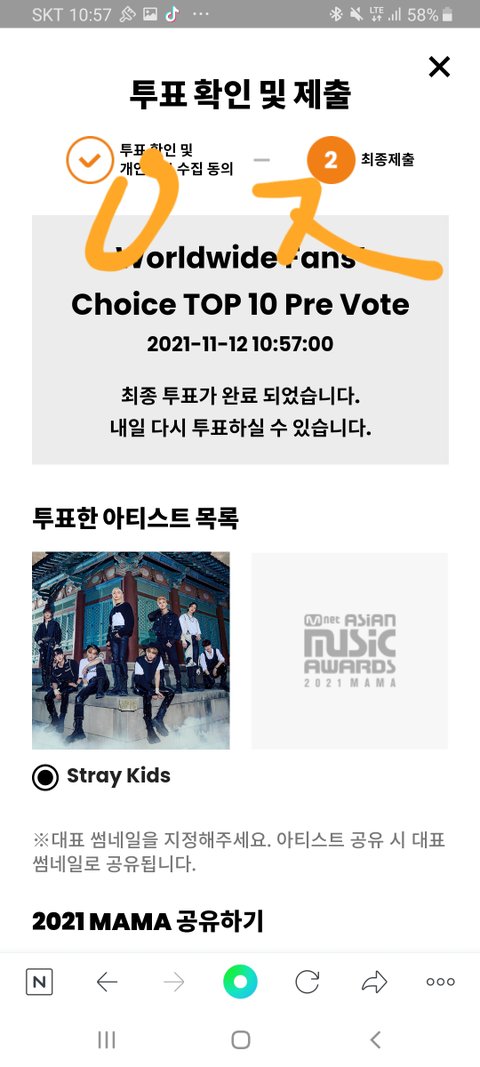 9번째 mama투표 인증