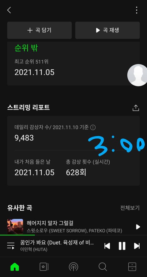 아니 나 학교 마치고 폰 키고 바로 스밍 확인 했는데 멜론이 로그아웃 되어 있는거야 그래서 너무 당황했는데 이 만큼 들었으면 많이 끊긴거야..?ㅠㅠㅠ 다들 얼마나 들었어?