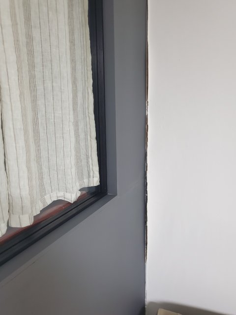본사에 연락하니 죄송하다고 공장에서 착오가 생겼다고 도배가 끝났으니 다시 설치는 힘들고 나무를 덧데어서 마감할수밖에 없다고 하더라고요