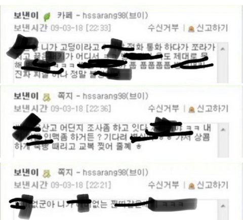 이하 첨부한 악플들과 게시물들은 수법이나 말투등을 고려한 바 전부 한두명이 지속적으로 쓴것으로 추정되는 악성게시물 들로서 2016년부터 꾸준히 상습적으로 사이버 괴롭힘을 지속했으나 고소당하지 않았다고 수차례 자랑을 한 상습범입니다.