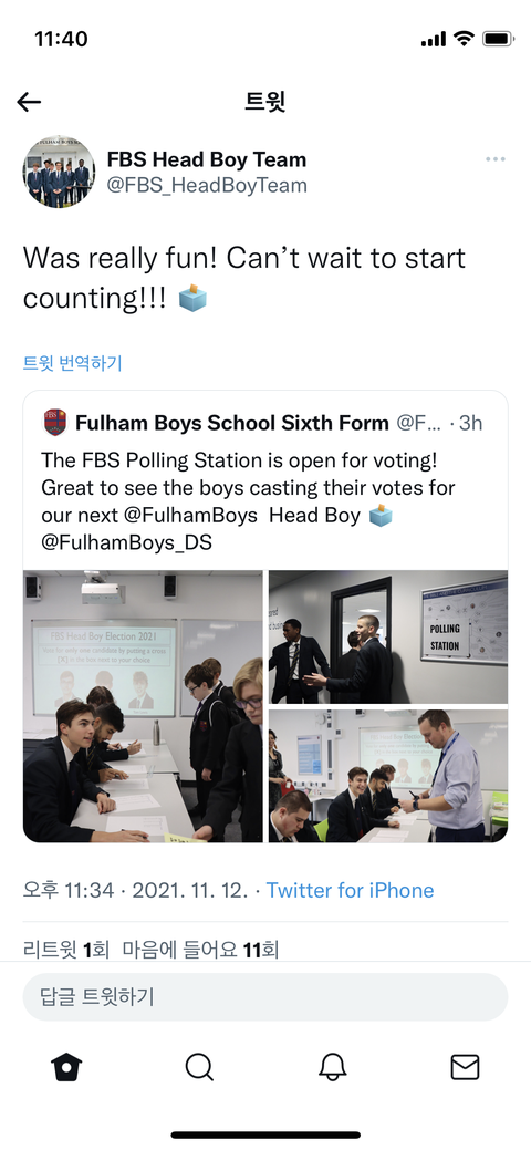 헤드보이 투표 끝 !!! 개표 기다리나봐