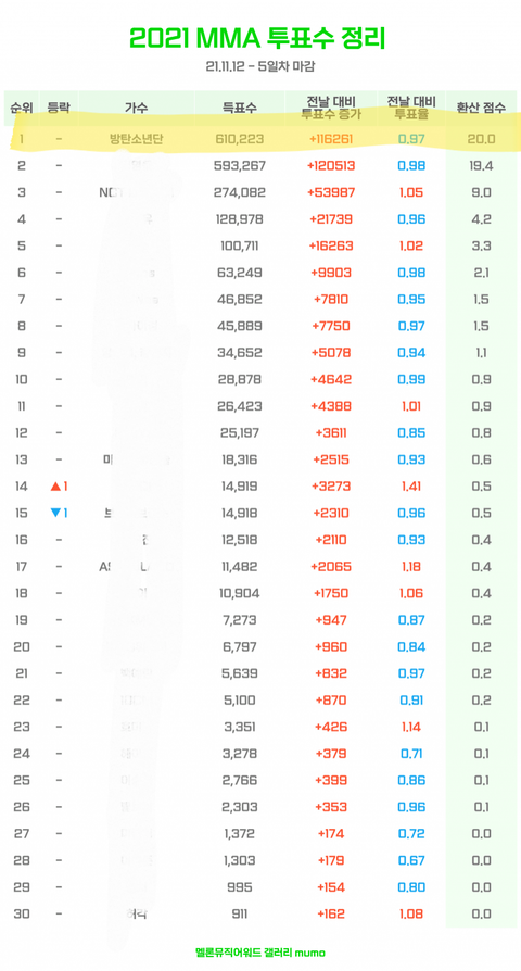 (5일차 마감) 12시 탑텐 격차 ! 16956표 !