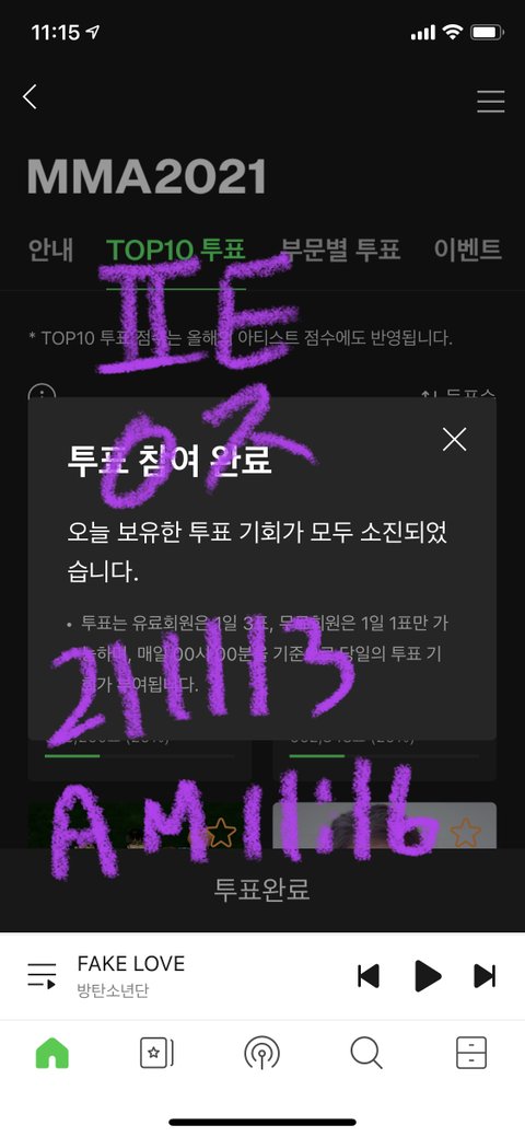 -인별 MTV EMA Biggest Fans 부문 투표 무제한이고 스토리 링크 들어가면 투표 됨 11/15 오전3시까지