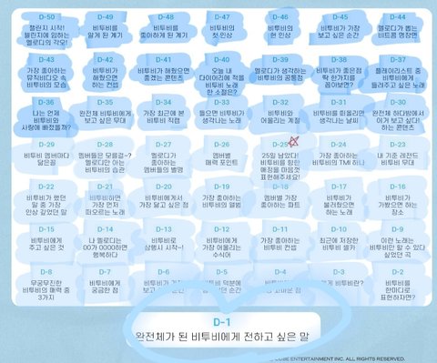 다 채우는 날이 올 줄이야,, 100일 깨져서 좋아한 게 진짜 엊그제 같은데 벌써 내일이 완전체래..