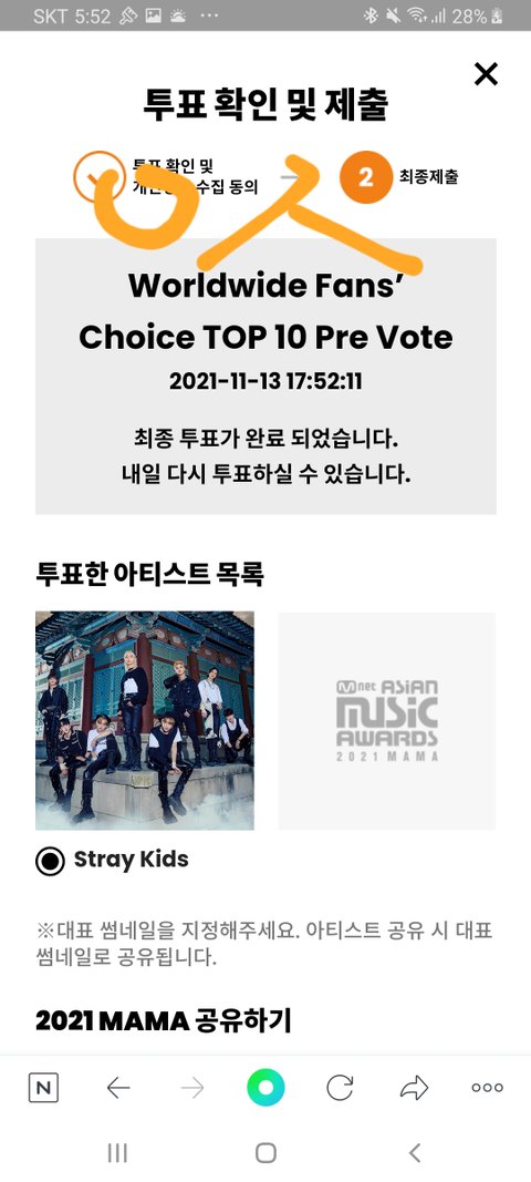 10번째 mama 투표 인증
