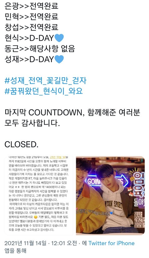 방금 클로즈 건 비투비 전역일 세는 전역봇