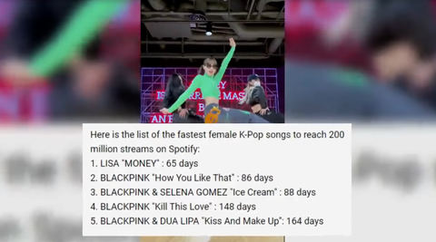 블랙핑크 리사 머니 스포디파이 2억 스트리밍 돌파 함