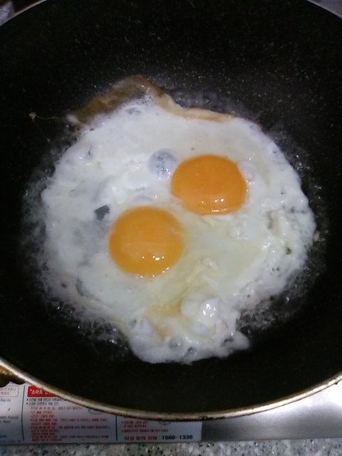 계란은 두 개 까주고 어느 정도 살짝 익으면 물을 싸악~ 두르고