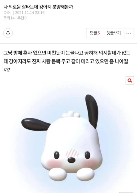 외롭고 공허하다는 ‘사람’보다 행복할지 안행복할지도 모르는 입양되지도 않은’개’ 를 먼저 걱정하는 당신들은 대체….