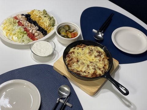 콥샐러드와 토마토치즈오븐스파게티