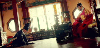 영조와 정조의 상하 관계를 기울어진 연출로 표현