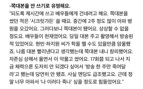 원래 쪽대본 쓰는 스타일이 아닌데
