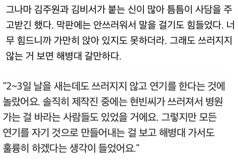 배우들은 그냥 시간나면 링거 맞았다고 함