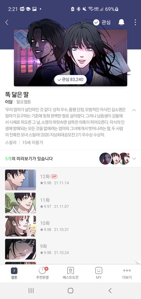 둘이 살면서 여주가 엄마 감시망에서 살아남고 복수하려는 내용