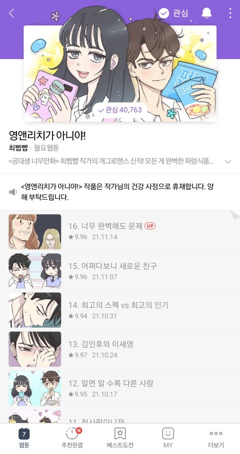 댓글로 다들 다른웹툰도 추천해주라 요즘 네웹 볼게없다ㅜ