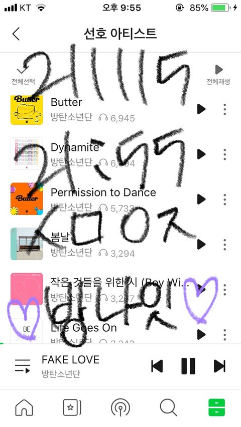 사과뮤직에서 버터 30초이상 듣기