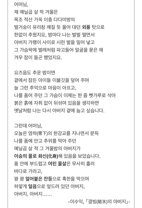 수능때 이런 시 나오면 감정이입 오지게 해서 문제 잘풀수있을듯