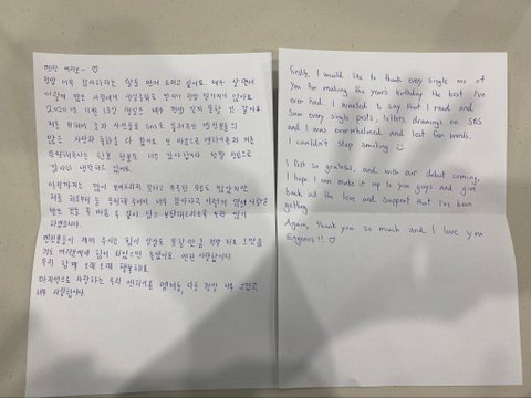 작년 생일 브이앱 때는 자기가 직접 쓴 손편지를