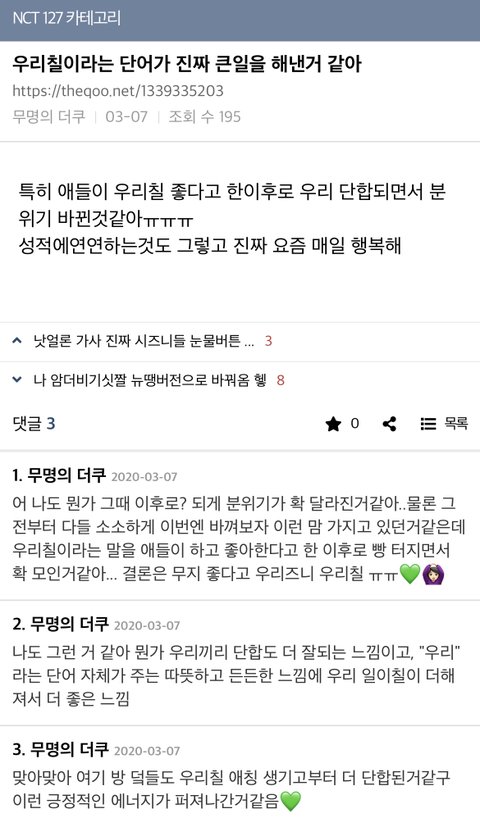 나 복습할때 ㄷㅋ독방가서 검색 많이하는데 20년3월에 저런글있길래 가져옴ㅎㅎ 진짜 우리칠이라는말 너무너무좋아