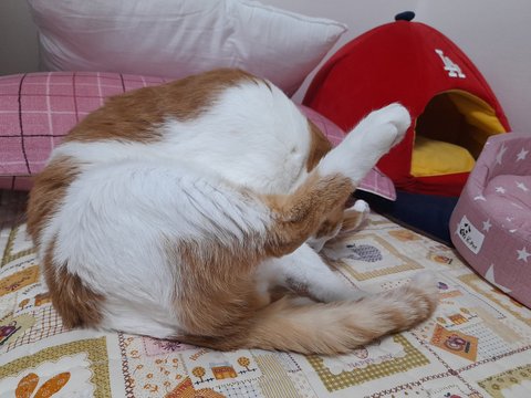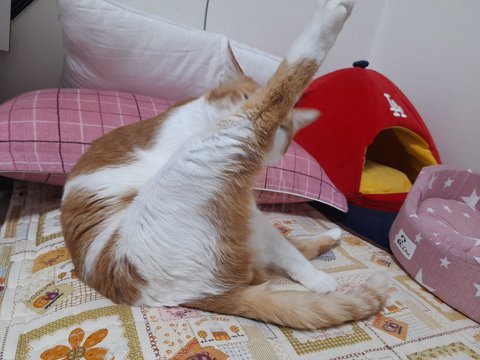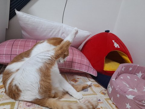 똥꼬 목욕을 가장 먼저하고 있음.