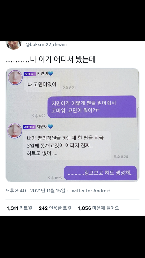 잘못된 행동이긴 한데 이거 다 캡쳐해서 글 구구절절 쓰면서 까는것도 수고가 넘치네 그 시간에 덕질해 ㅇㅇ