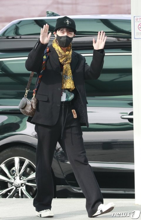 밋밋 할 수 있는 검정색 옷에 스카프로 포인트 준거
