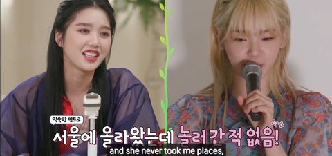승희가 미미에게 서울에 상경했을때 같이 놀러간적이 없다고 얘기하는중