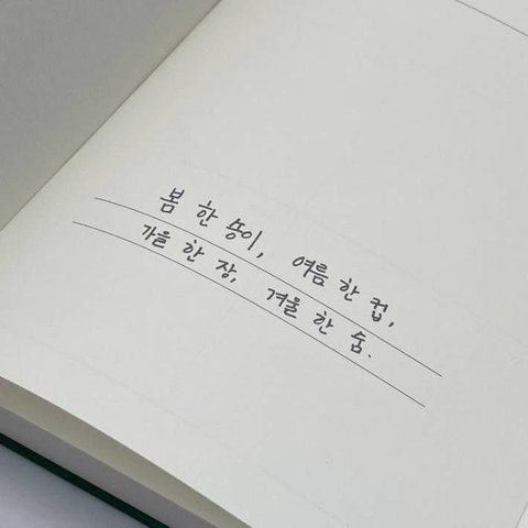 '봄 한 송이, 여름 한 컵, 가을 한 장, 겨울 한 숨.'