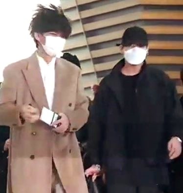 뷔 반려견 포메 - 연탄 , 정국 반려견 도베르만 - 밤 뷔는 갈색옷에 펌이라 털찐 연탄이같고 정국은 검은옷에 캡모자써서 깔끔한 밤이같음
