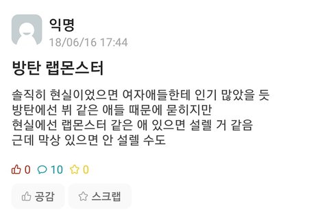 알엠 까는 애들 실제로 알엠 옆에 서면 아무 말도 못할듯 ㅋㅋ