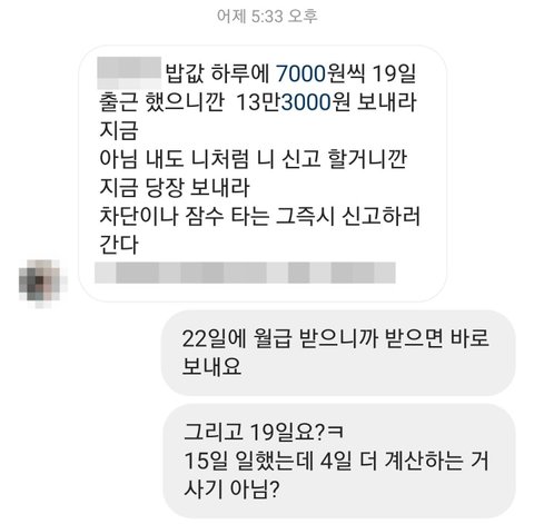 퇴사하고 며칠 후 점장이라는 사람이 계약서에도 없는 식비를 내놓으라고 인스타그램 DM으로 협박 메시지를 보냈습니다. 귀찮다고 무시하지 말라고 했더니 오히려 욕설로 적반하장으로 대했습니다.그런데 그걸 빌미로 고소하겠다고 협박을 했습니다. 저는 더이상 귀찮을 일을 벌리고 싶지 않어서 돈을 보냈습니다.